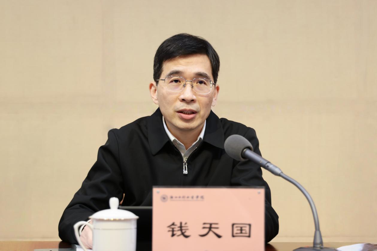 钱天国强调,要深入学习贯彻习近平总书记在二十届中央纪委五次全会上的重要讲话精神,以更高标准、更实举措推进全面从严治党,为学校“十五五”发展开好局起好步提供坚强的政治保证。要全面加强党对学校工作的领导,不断提高党委领导下的校长负责制运行效能和办学治校水平。要扎实开展树立和践行正确政绩观学习教育,把政绩体现在推动学校发展的成效上、体现在师生群众的幸福感满意度上。要全面高质量完成省委巡视整改任务,组织开展对6个二级党组织的校内巡察。要严格落实意识形态工作责任制,加强阵地建设管理,守牢政治安全底线。要深入实施“培根铸魂强基”工程,增强基层党组织政治功能和组织功能。要健全干部“选育管用”全链条机制,完善校内综合考核办法,更好激励干部担当作为。要严格落实党风廉政建设责任制,深化清廉水院建设,持续涵养风清气正政治生态。要认真开展“干部作风建设深化年”活动,大力弘扬“六干”作风,求真务实、真抓实干,推动全年各项决策部署和工作任务落地见效。