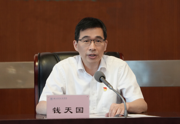 钱天国指出,今年4以来,学校党委认真贯彻党中央和省委的统一部署,在省委主题教育第十五巡回指导组的悉心指导下,聚焦“学思想、强党性、重实践、建新功”总要求,对照主题教育具体目标,深入学习领悟习近平总书记关于以学铸魂、以学增智、以学正风、以学促干以及树立和践行正确政绩观等重要论述精神,扎实推进主题教育各项工作,取得了较好成效一是加强组织领导,坚持高标准严要求围绕理论学习、调查研究、推动发展、检视整改、建章立制等5项重点工作,制定主题教育1+N工作方案一表三清单”;实行领导小组定期研究、基层党组织定期汇报交流、主题办每周例会等制度;建立保障机制、推进机制、审核机制和督办机制,压实各级领导班子和领导干部责任。二是丰富形式载体,做到“四联五学”全覆盖。实行校党委、二级党组织、党支部、党员干部四级联动,综合运用自学、研学、溯源学、党课学、活态学等五种学习方式通过党委理论学习中心组学习、读书班、三会一课、理论宣讲等多种途径,打造学习矩阵,推动习近平新时代中国特色社会主义思想入脑入心。三是贴近工作实际,在调研解题上下功夫围绕立德树人根本任务,结合当前重点工作,高质量开展大走访大调研大服务大解题活动学校领导班子和中层干部分别完成专题调研课题11项、30项,全校完成各类调研转化、即知即改项目82四是坚持问题导向,在检视整改上下功夫。建立问题“收集遴选—归口管理—动态销号”机制,共检视学校面上问题10个、二级党组织层面问题40;以“专班化组织、清单式管理、销号式落实”稳步推进问题整改;回应师生“急难愁盼”推进民生实事项目10;践行新时代“浦江经验”,校院两级同向发力、共同答题从校情校本出发,紧盯办学治校薄弱点,新制定15项制度,巩固深化检视整改成效。五是紧扣发展主线,积极建新功求实效。将主题教育与贯彻习近平总书记“贺信精神”贯通起来,进一步激发广大党员干部干事创业热情大家纷纷表示要坚定不移沿着总书记指引的“高质量、有特色”发展方向奋勇前进。通过开展主题教育,有力推动了党建“四个融合”,有效提升了党员干部推动学校事业发展的能力,加快解决了学校发展中的一些堵点难点问题,在人才引进、硕士点立项建设、现代产业学院建设、数字孪生流域科研创新、服务地方水利事业等方面取得了实质性进展和新的成效。主题教育期间,学校新增1个全省“双带头人”党支部书记工作室,1个全省高校党建标杆院系、2个样板党支部,7个水利先锋党支部1个案例入选全省高校校企地党建联建典型案例,2个案例入选钱塘区政校企党建融合优秀案例,1个单位获评钱塘区政校企党建融合先进党组织。