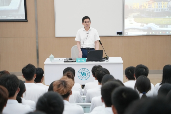 9月15日晚上,党委书记钱天国以《溯源启智 接续前行》为主题,从溯源、传承和展望三个篇章,在南浔校区为2023级全体新生讲授了一堂兼具家国情怀与责任担当,充满历史底蕴、哲学意味和未来气息的开学第一课。
