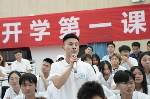 国际教育交流学院 翻译23-2 周淑琪:悠悠校歌,开启了我在大学的第一课。在钱书记的课堂上,我看到了浙江水院的未来蓝图正在徐徐展开,而我们一个个全新的水分子,在蓝图里汇聚成水院新的“动脉”。在这个充满活力的校园里,我们一定不负殷切期望,脚踏实地,发扬水院人勇立潮头、敢为人先的精神。