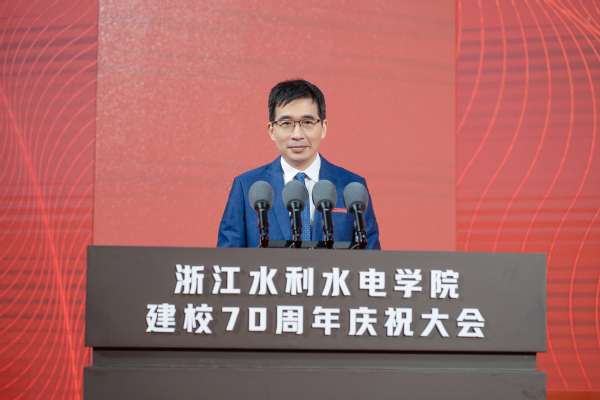 钮新强在致辞中表示,家乡南浔的第一所高校即将开启建设高水平应用型大学的新征程,这是一件大事、好事,对学校的未来充满期待。他指出,浙江水利水电学院历经70年的丰厚积淀,前景广阔,学校特色优势鲜明,伴随传统水利向现代水利发展,学校在数字孪生等方面的探索有望推动智慧水利领域的科技创新,在水利治理能力现代化中扮演更加重要的角色。学校双校区均位于长三角的核心区域,随着办学格局和资源的优化提升,有望快速融入绿色发展和长三角一体化发展战略,为学校和地方的相互赋能、相互成就提供更大空间。相信学校一定能继承优良传统、登高望远、开拓新境,在习近平总书记“贺信精神”的指引下,为实现百年大学梦砥砺前行,为培养造就更多高素质应用型人才、更好服务地方和中国水利事业的高质量发展作出更大贡献。