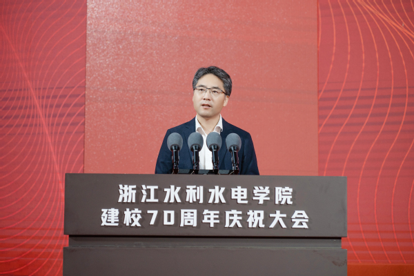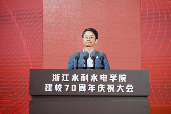 钱天国在主持时指出,多年来,在省委、省政府的坚强领导和省水利厅、教育厅等上级部门的领导指导和关心支持下,学校深入贯彻“贺信精神”,牢记习近平总书记殷殷嘱托,坚持一张蓝图绘到底,办学规模、办学层次、办学水平不断提升,学校事业“高质量、有特色”发展取得了阶段性成果。他表示,学校将以建校70周年为新起点,深入学习贯彻习近平新时代中国特色社会主义思想,坚持以“贺信精神”为根本遵循,坚守水利水电办学初心,锚定高水平应用型大学建设目标,深入实施人才强校战略,凝聚水院共同体强大合力,落实立德树人根本任务,持续推动学校事业高质量有特色发展,为深入实施“八八战略”,建设高等教育强省,奋力谱写中国式现代化浙江新篇章展现水院担当、作出水院贡献。