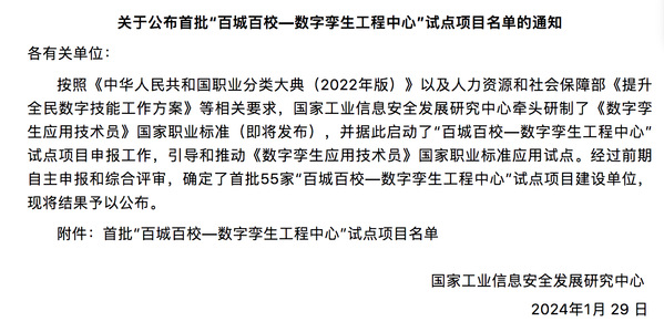 “百城百校—数字孪生工程中心”试点项目是深入贯彻党的二十大精神和习近平总书记关于做好新时代人才工作的重要思想,落实党中央、国务院《关于加强新时代高技能人才队伍建设的意见》的重要举措。“百城百校一数字孪生工程中心”试点项目将整合汇聚产、学、研、用各方优势资源,促进数字孪生新技术与教育资源协同整合,加快产业数字化转型进程,推动我国数字孪生技术在工业领域的全面应用。